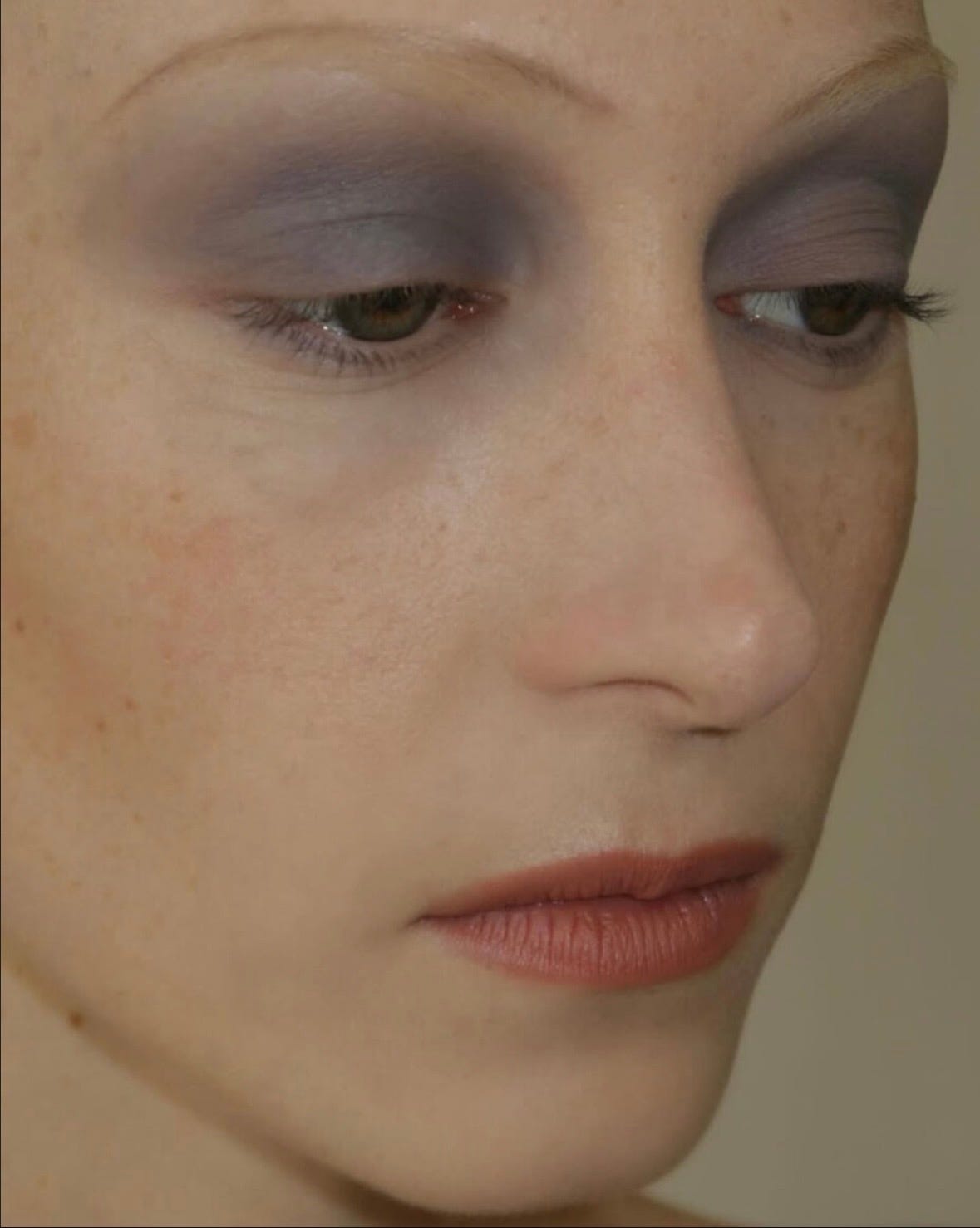 Now I was so invested in the eyeshadow and suddenly I realized where it started. The makeup look from one of my favorite collections of fashion month. Conner Ives almost cabaret-ish makeup. Dusty lilac and pink.