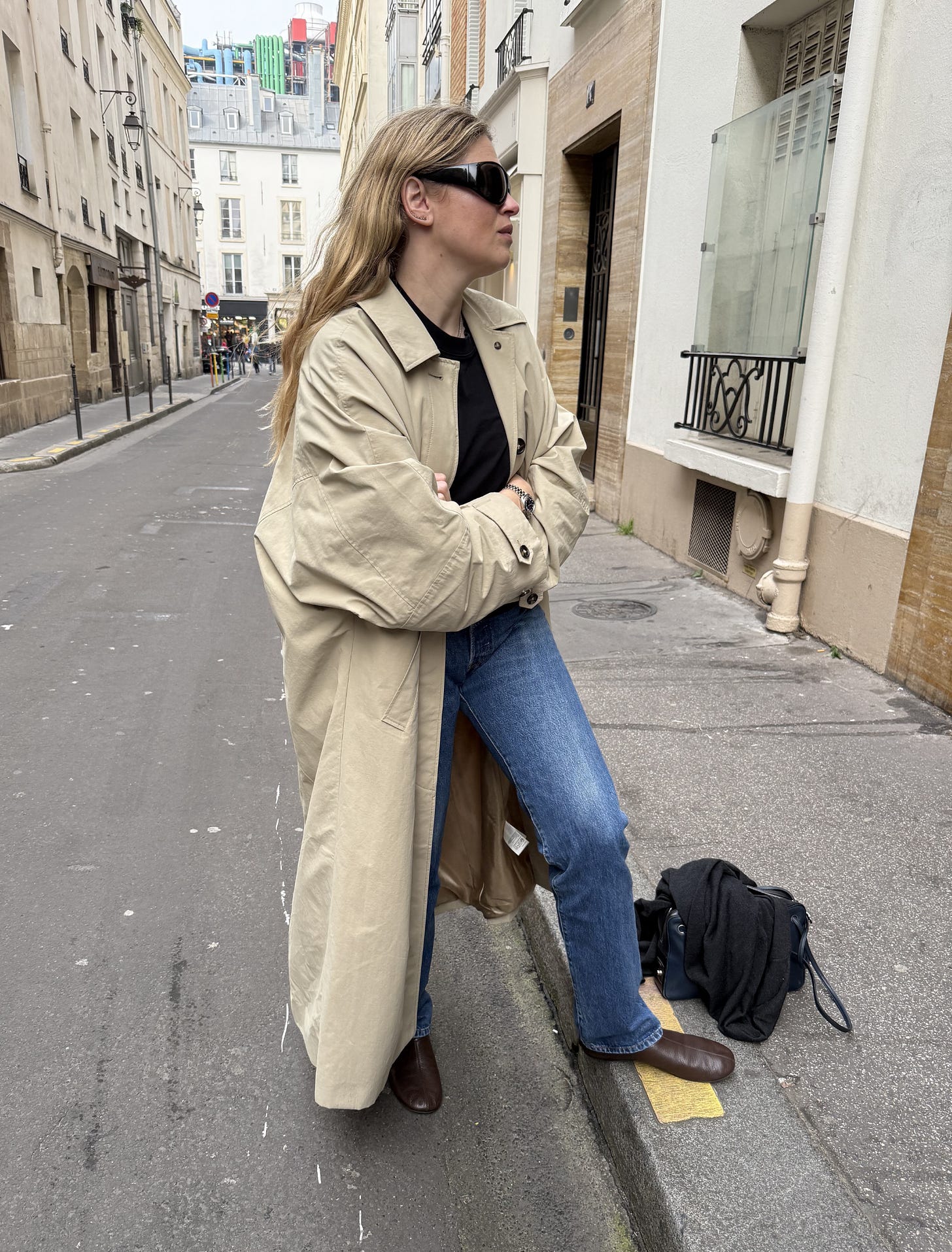 This was one of my favorite fits from my trip. The super size car coat is the right shade of beige with almost a tiny hint of green. I wore it with vintage Levi’s 505 and flats that is kind of medieval core but in a cool way?